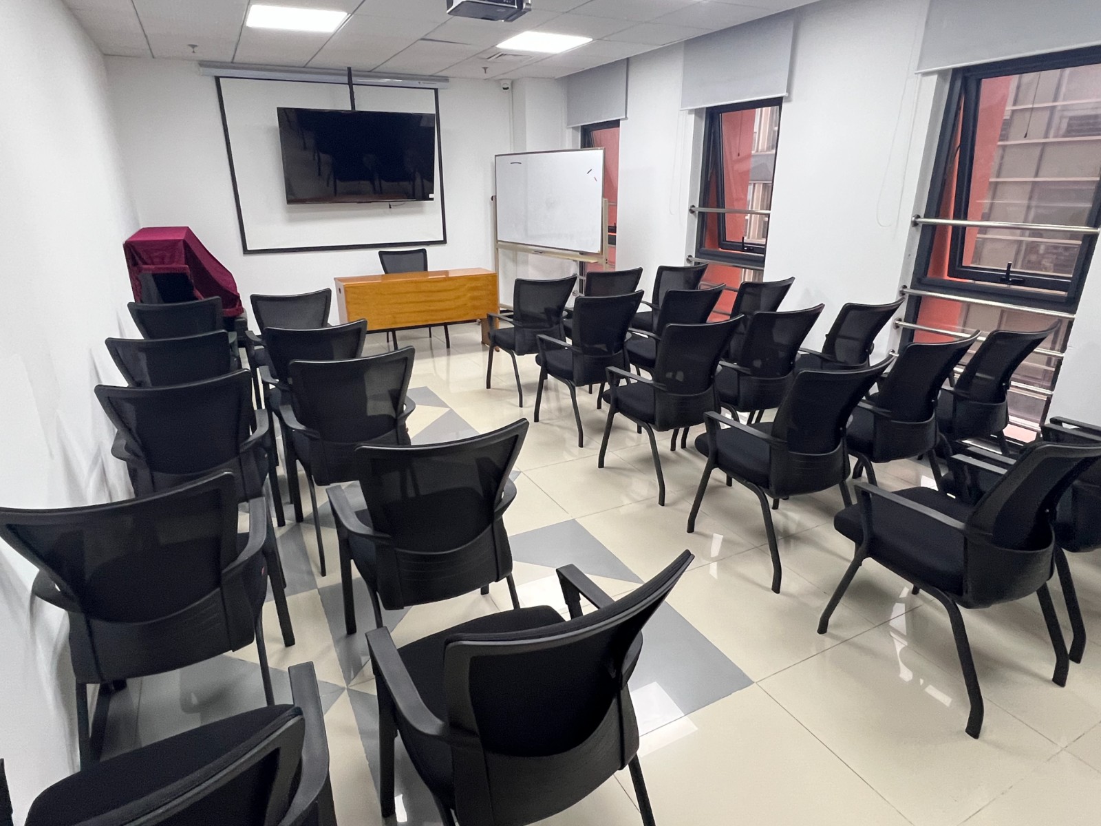 教室配套设施维护工作重点聚焦五层教学教室的教具、家具、地板、墙面、窗帘及小剧场座椅套等关键部位,工作人员对各类配套设施开展全面检修维护,及时修复损坏部位、清理污染区域、更换老化零部件,确保设施设备完好达标。改造后,所有配套设施均达到洁净规范、完好可用的标准,教具固定牢固、家具洁净整洁、地板平整光滑、窗帘完好顺滑,小剧场座椅套干净规范,为各类教学活动的有序开展提供了坚实保障。