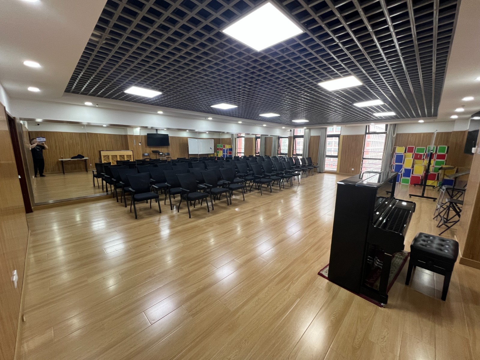 五层教学教室座椅更新工作同步有序推进,改造后,教室座椅整洁规范、牢固耐用、坐感舒适,彻底消除各类安全隐患,进一步优化了教学环境,有效满足了日常公共文化培训工作的开展需求。