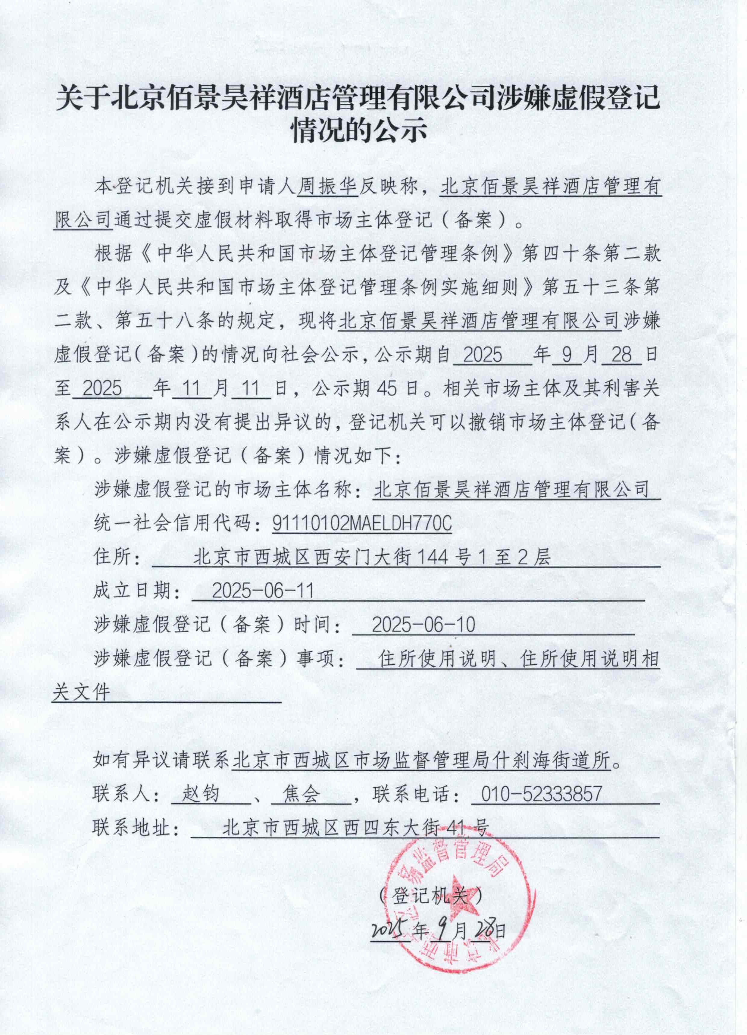 关于北京佰景昊祥酒店管理有限公司涉嫌虚假登记情况的公示.jpeg