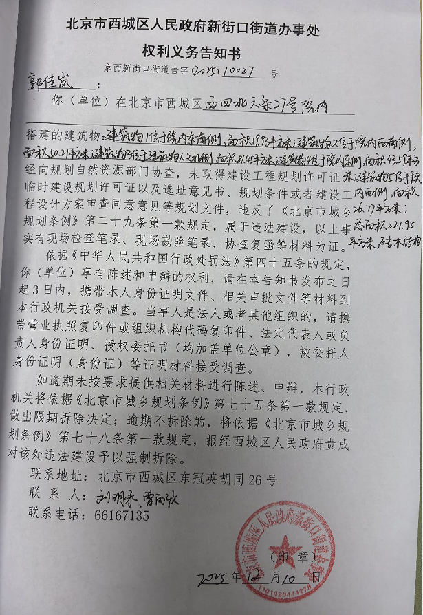 如逾期未按要求提供相关材料进行陈述、申辩,本行政机关将依据《北京市城乡规划条例》第七十五条第一款规定,做出限期拆除决定;逾期不拆除的,将依据《北京市城乡规划条例》第七十八条第一款规定,报经西城区人民政府责成对该处违法建设予以强制拆除。