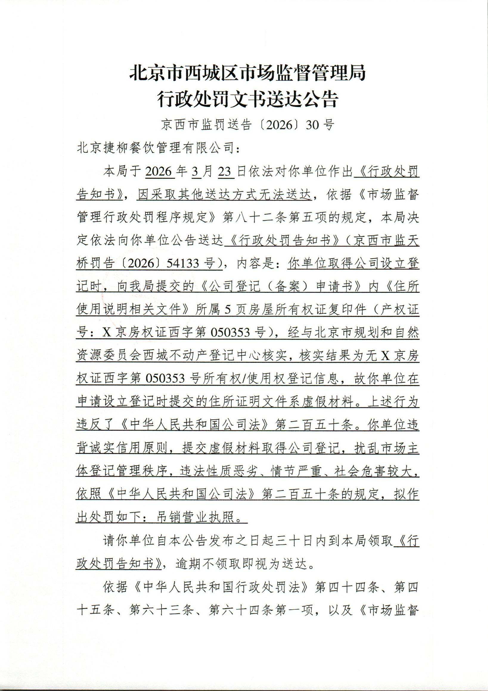 北京捷柳餐饮管理有限公司-处罚告知书送达公告 (1).jpg